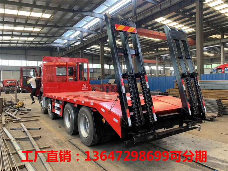 2、东风、解放、江淮后八轮挖机平板拖车,可运输20~30吨的工程机械