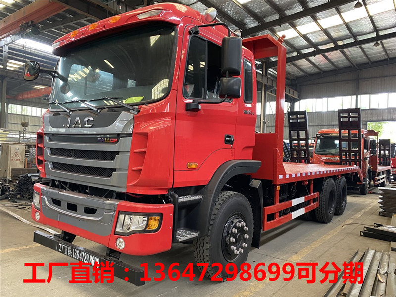 江淮后八轮平板拖车:采用玉柴270/290马力,法士特9档高低速,江淮K3L驾驶室,11.5T/13T双后桥,轴距4350+1300/1350,1100R20钢丝胎,300双层大梁,ABS,气囊减震座椅,行车记录仪,中控门锁,电动门窗,整车尺寸9950*2550*3350